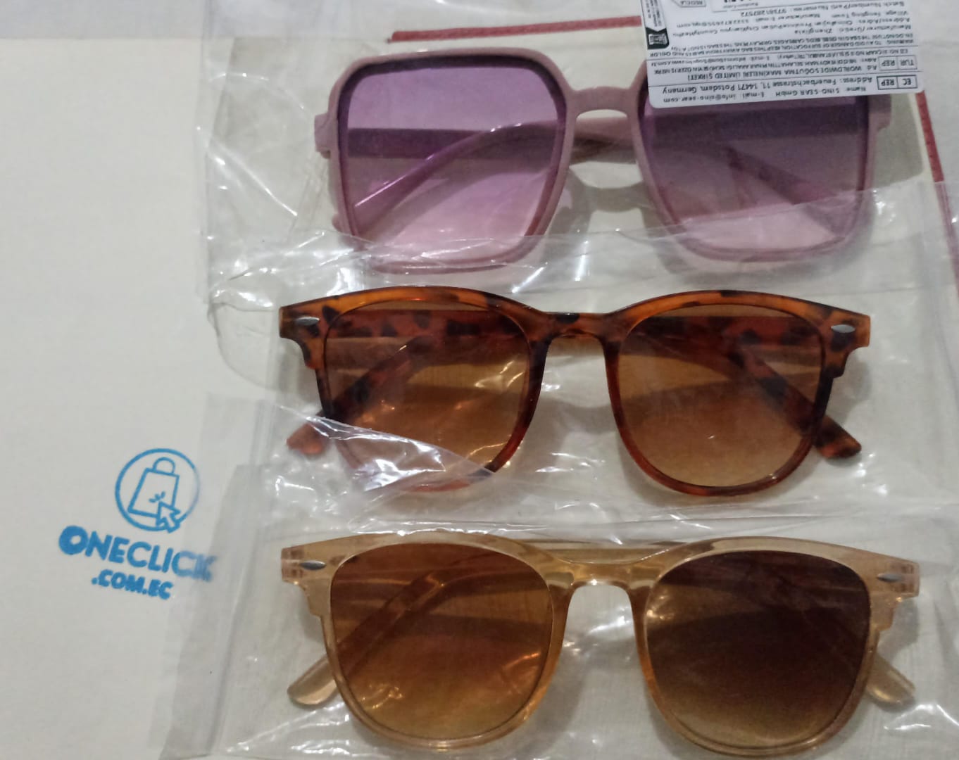 Son tres pares de gafas de sol de moda para mujer.